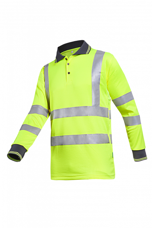 Soft, yet comfortably fresh, the Olgiata hi-vis polo shirt with long sleeves is the ideal bodywear for you. The special drop-knit double knit structure absorbs perspiration and quickly removes it from the skin so that you never feel clammy. In addition, the hi-vis mesh under the arms ensures optimum ventilation. The elastic reflective tape on the arms, chest, stomach and back moves comfortably with you. The turnover collar and the cuffs are nicely finished in a dark grey colour.