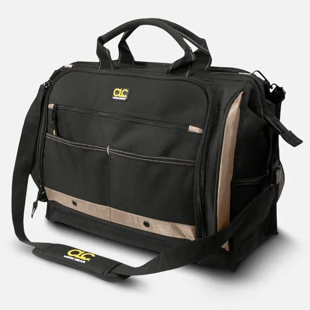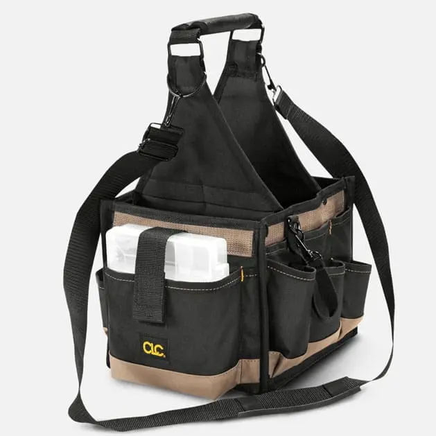 Our popular multi-compartment tool carrier with a large center compartment for power tools and two zippered side panels with multiple pockets for all your favorite hand tools has padded handles and an adjustable shoulder strap.